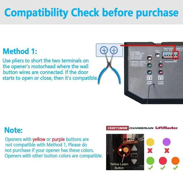 | Compatible Devices | Amazon Echo, Google Home, Apple devices, Standard garage door openers, Standard garage door remotes |
