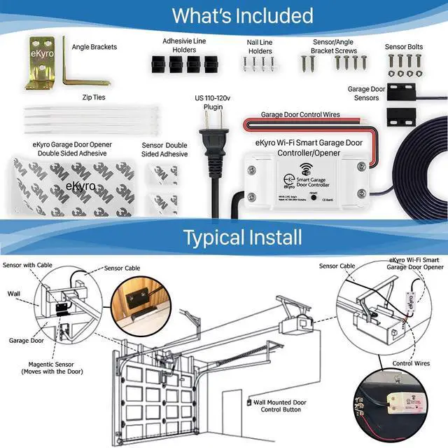 **Each separately controlled door will require its own eKyro Smart Garage Door Opener.