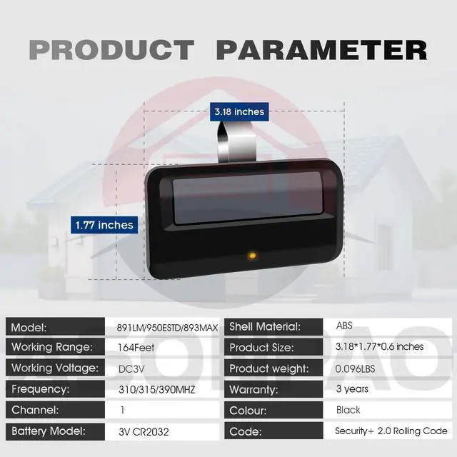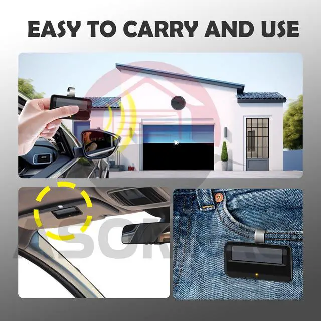 **Durable ABS Alloy Shell & Easy Pairing**: Built with a durable ABS alloy shell, easy to pair with your garage door motor, and fits conveniently on your cars sun visor.
