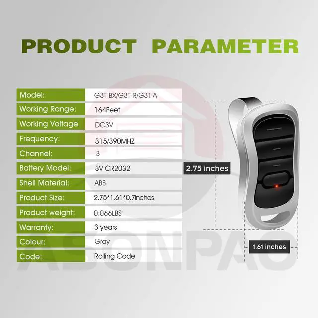 **Advanced Security**: Utilizes rolling code technology for enhanced security and theft prevention. Compatible with major brands.