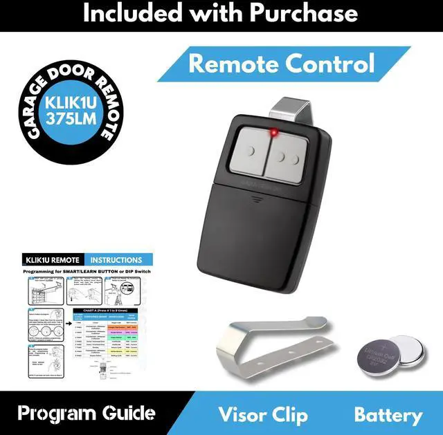 Universal Garage Remote Replacement for LiftMaster, Chamberlain, Genie, Linear | Replaces Clicker KLIK1U, 375UT, 375LM | Operates 2 Doors or Gates, Dip Switch & Learn Button Ready