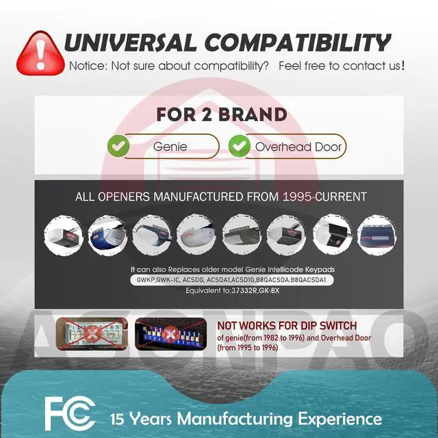 Wide CompatibilityUniversal for Overhead Door Legacy Python Odyssey Destiny Phantom Garage Door Opener Since 1995.Not Support Dip Switch Opener!