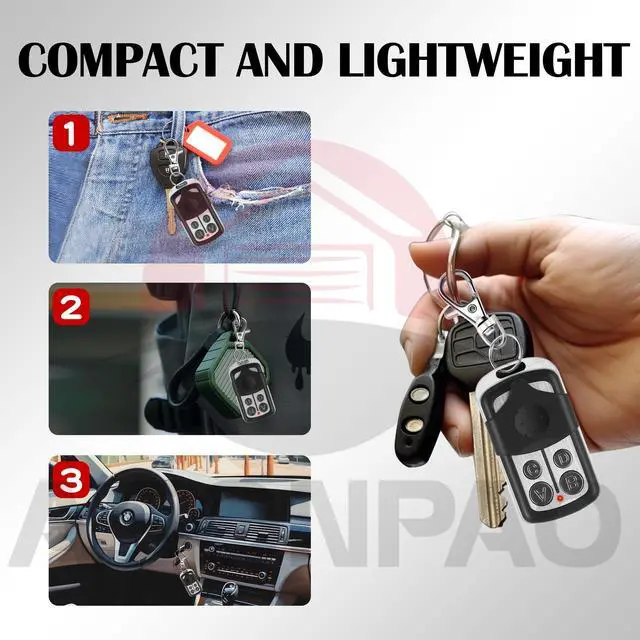 **User-Friendly Design & Wide Control Range**: With a 164ft control range, this compact remote easily pairs with your garage door motor and can be conveniently stored on your cars Key for quick access.