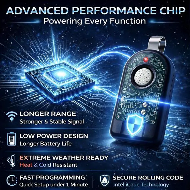 Your reliable replacement remote for Genie & Overhead Intellicode openers (390 MHz). Features a 150ft long range, robust security, and simple press-to-program setup. Get convenient access now.