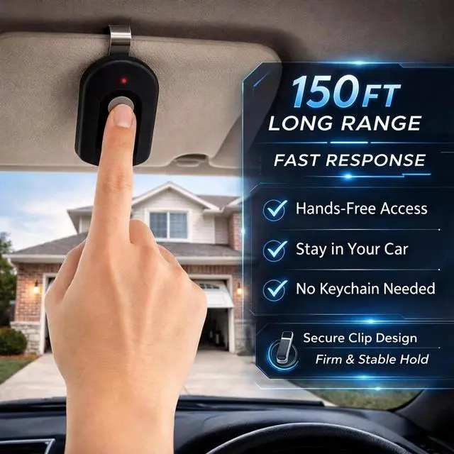 With a powerful 150ft range, you can open the garage door as you pull up the driveway. No more waiting outside.
