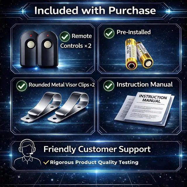 Use the included visor clip to keep your remote securely within reach for quick and easy access every time you drive.