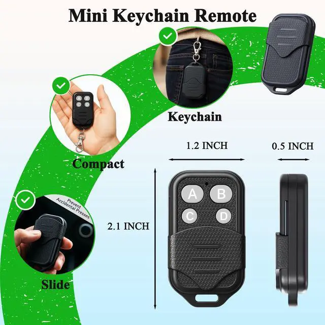 TRUE 4-Button remote design allows control of up to 4 garage door openers or gate operators at once, which eliminating the trouble of carrying multiple remote.