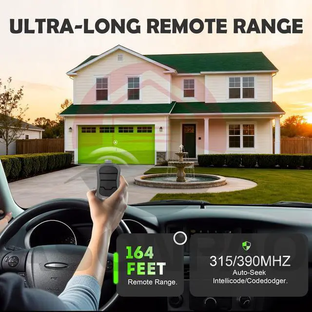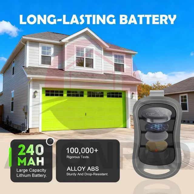 240mAh Lithium Battery & 164FT RangePowered By A Built-In 240mAh Lithium Battery, The Genie Garage Door Opener Remote Provides A Long Operating Range Of Up To 164 Feet For Reliable, Everyday Use.