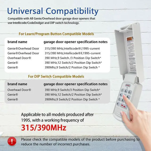 XDTKML Garage Door Opener Keypad for All Genie Intellicode Overhead Door Codedodger and Dip Switch Opener Compatible with 1995-Current 315/390MHZ