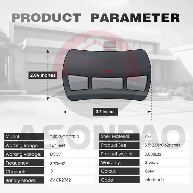 Long Battery Life & Industrial-Grade ChipPowered By A 240mAh Lithium Battery And Featuring An Industrial-Grade Chip Resistant To Low Temperatures, This Overhead Door Garage Door Opener Remote Delivers Years Of Reliable Use Even In Harsh Winter Conditions.