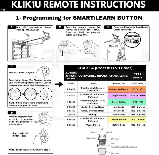 Self-programmable remotes and keypads that come with step-by-step instructions for hands on programming.