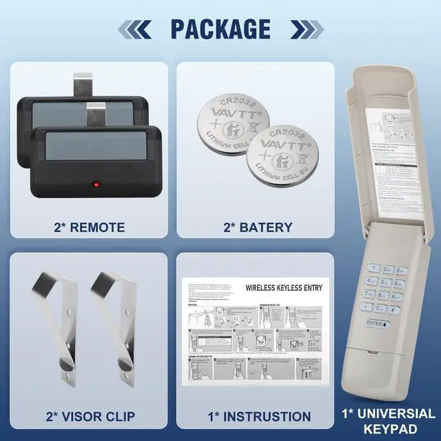 ![]() For Yellow/Gren(2-pack) | ![]() Keypad+Remote(Universal) | ![]() 373lm-2pack(Universal) | ![]() 373LM+Keypad(Universal) | ![]() 371LM+Keypad(Universal) | ![]() mini Garage Door Remote | ![]() Remote & Keypad |