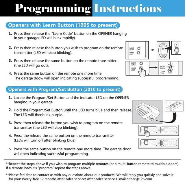 • Compatibility: The Genie garage door opener remote replacement for Genie Overhead Door garage door remote G3T-R G3T-BX G3T-A, only compatible with All Genie IntelliCode and Overhead Door CodeDodger garage door openers manufactured after 1995 [NOT compatible with openers using DIP switch remotes]. With two buttons, control two garage doors effortlessly with a single remote