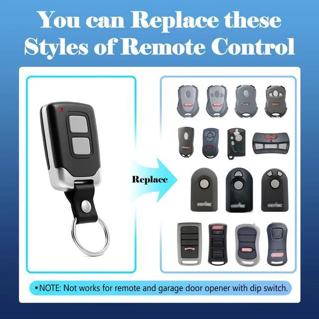 • Easy to Use: The garage opener remote ensures "no waiting" roll-in access from a distance of up to 150 feet, offering convenience and flexibility for seamless garage entry. This compact keychain remote features smart rolling code technology, a lightweight design, and offers a 150-feet long-range control capability. It serves as an ideal replacement for lost or damaged remotes in households with multiple cars.