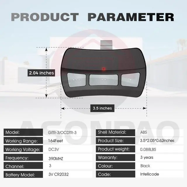 3 for Genie & Overhead Door Garage Door Opener Remote GITR-3 OCDTR-3 [5 Year Warranty]