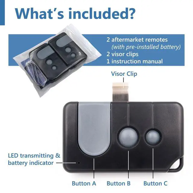This aftermarket replacement remote ONLY works with Purple, Red/Orange, Yellow or Green Learn Button Sears Craftsman / LiftMaster / Chamberlain brand garage door opener (hanging in your garage) made/manufactured from 1993-current that features Security+ 315 MHz / 390 MHz or Security+ 2.0 MyQ or Billion Code technology.