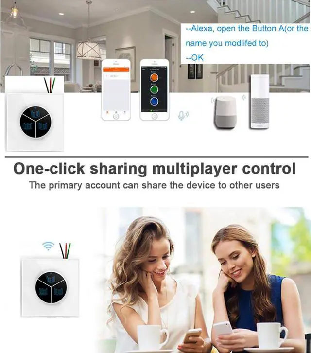 -Have standard wall push button: connect the switch A(any one of A/B/C) and Com terminal to the your push button.