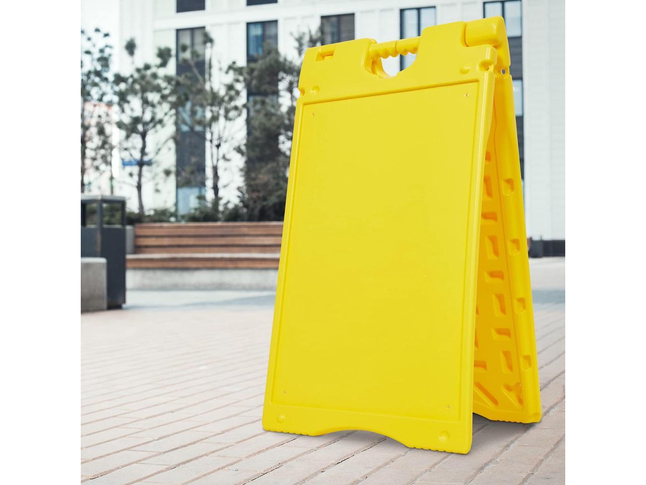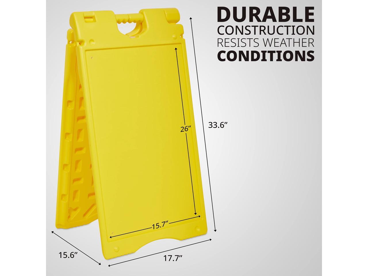 Jumbl A-Frame Signboard 15.7 x 26 Display Surface Small Outdoor Sandwich Board w/Weather Resistant PVC Sign Protector & Sand Fill Holes Dual Signage Stand for Storefront Sidewalk Curb (Yellow)