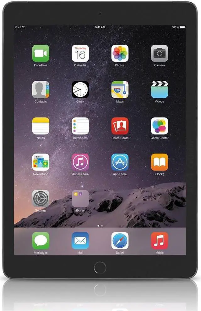 Work and play faster, thinner, and lighter with the silver 16GB iPad Air 2 from Apple. Featuring Apple's 64-bit A8X chip and M8 coprocessor, the Air 2 delivers 40% faster CPU performance and 2.5 times the graphics performance when compared to its predecessor. It's also 18% thinner at 0.24" and weighs 0.96 lb. The LED-backlit 9.7" 2048 x 1536 Retina IPS LCD display's anti-reflective coating reduces glare by 56% and uses a single-layer design to eliminate internal reflectance for richer colors, greater contrast, and sharper images.