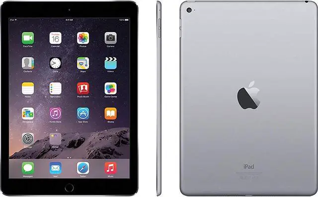 Work and play faster, thinner, and lighter with the space gray 16GB iPad Air 2 from Apple. Featuring Apple's 64-bit A8X chip and M8 coprocessor, the Air 2 delivers 40% faster CPU performance and 2.5 times the graphics performance when compared to its predecessor. It's also 18% thinner at 0.24 and weighs 0.96 lb. The LED-backlit 9.7 2048 x 1536 Retina display's anti-reflective coating reduces glare by 56% and uses a single-layer design to eliminate internal reflectance for richer colors, greater contrast, and sharper images. This iPad features 802.11 a/b/g/n/ac Wi-Fi technology with MIMO support for download speeds up to 866 Mbps as well as Bluetooth 4.0.