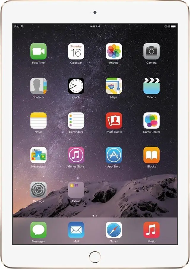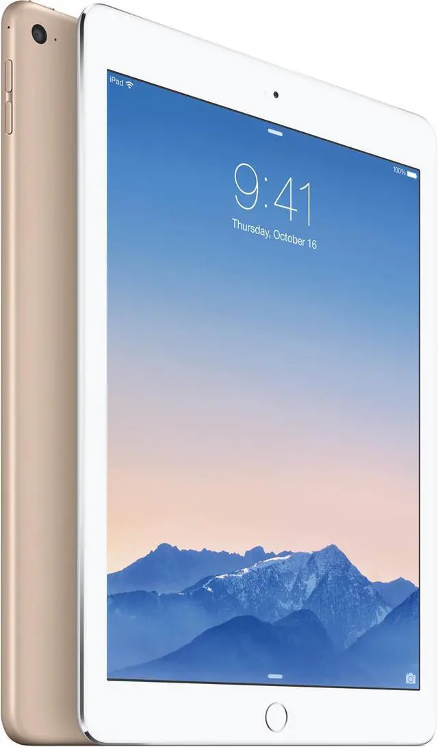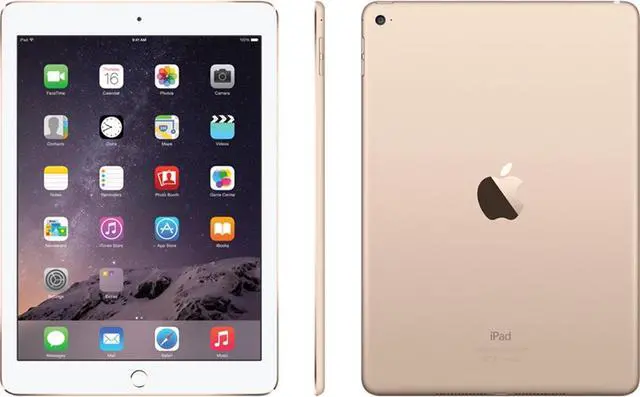 Work and play faster, thinner, and lighter with the gold 32GB iPad Air 2 from Apple. Featuring Apple's 64-bit A8X chip and M8 coprocessor, the Air 2 delivers 40% faster CPU performance and 2.5 times the graphics performance when compared to its predecessor. It's also 18% thinner at 0.24" and weighs 0.96 lb. The LED-backlit 9.7" 2048 x 1536 Retina IPS LCD display's anti-reflective coating reduces glare by 56% and uses a single-layer design to eliminate internal reflectance for richer colors, greater contrast, and sharper images. This iPad features 802.11 a/b/g/n/ac Wi-Fi technology with MIMO support for download speeds up to 866 Mbps as well as Bluetooth 4.0.
