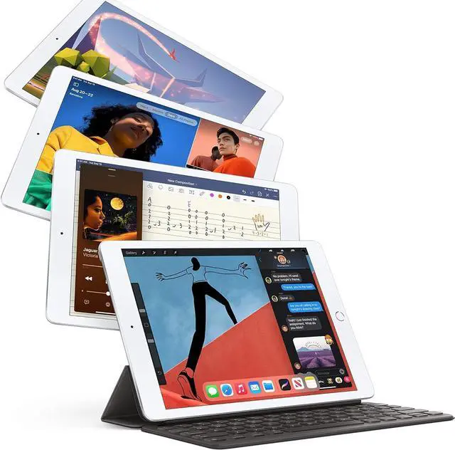 The iPad (8th generation) features a 10.2 -inch Retina display, an A12 Bionic chip with a Neural Engine, 3GB of RAM, and storage options of 32GB or 128GB. It has 8MP rear and 1.2MP front cameras, supports the 1st generation Apple Pencil and Smart Keyboard, and offers up to 10 hours of battery life. Key connectivity includes Wi-Fi ( 802.11 ac), Bluetooth 4.2, and a Lightning connector.