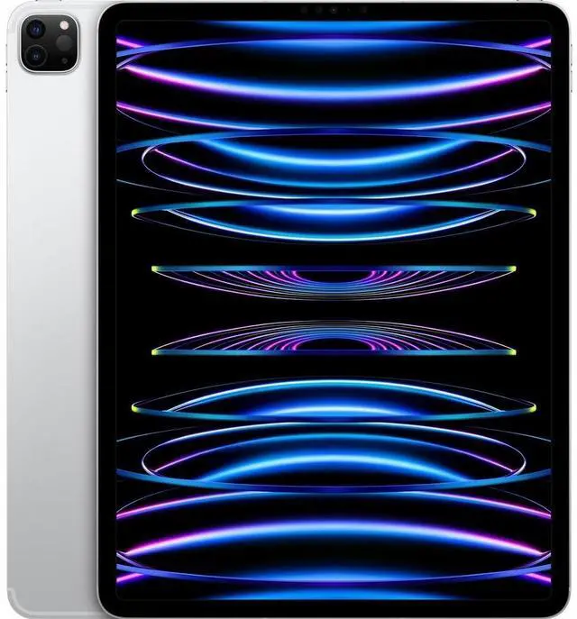 Enhance your mobile productivity with the Apple iPad Pro 12.9 -Inch 5th Gen tablet in silver. Boasting a brilliant LED display, powerful M2 processor, 8GB RAM, and 256GB storage, this unlocked tablet supports 5G wireless technology. It features a touch-screen interface, front and rear cameras, and weighs just 1.51 lbs for easy portability. Enjoy up to 10 hours of battery life and the convenience of Bluetooth 5.0 connectivity, all running on the intuitive iOS 13 operating system.