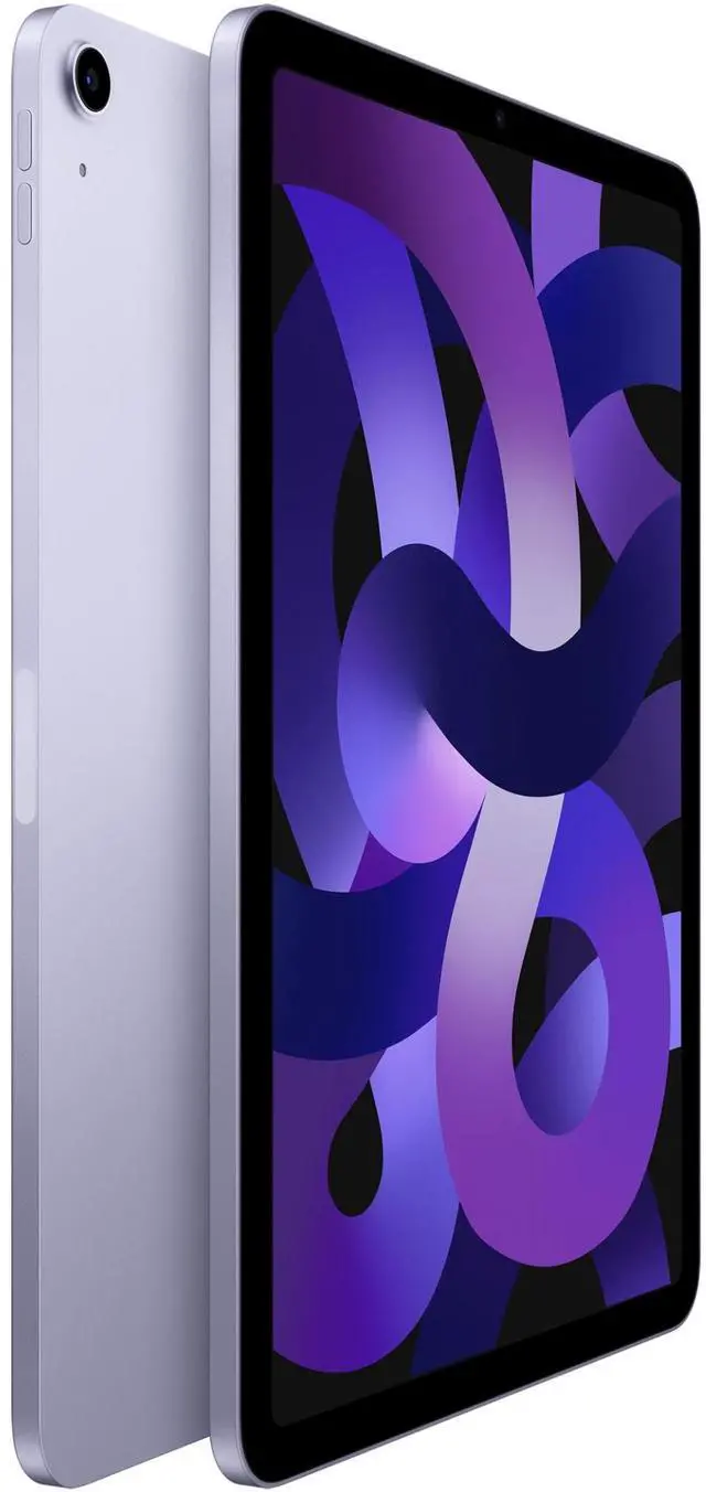 The Apple iPad Air 5 (5th Gen, 2022) in refined Purple features a bright 10.9 inch Liquid Retina display with 2360 x 1640 resolution, 500 nits brightness, P3 wide color, and True Tone for accurate, punchy visuals.