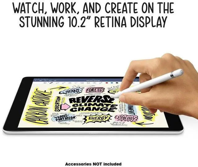 Center Stage automatically pans the camera to keep them in view. This is especially useful when other people join in because the camera detects them and smoothly zooms out to include them. Center Stage shines during video calls and it makes them feel more natural. It works in FaceTime, but also in other third-party video-calling apps. The A13 Bionic chip is more powerful than its predecessor, the A12 Bionic chip, and supports Neural Engine machine learning. Moreover, its Smart Connector offers Smart Keyboard support (not included) for comfortable typing, while its display is compatible with the 1st gen Apple Pencil (not included), so users can write and draw.
