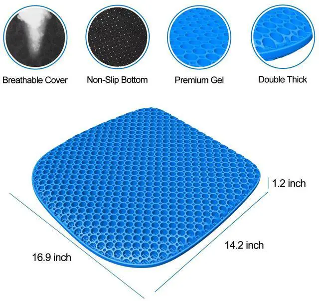 Soft & Breathable Enhance Large Size, The Gel cushion measures 17(L) x 15(W) x 1.2(T) inches . Double gel pad design. Not only thicker, but also more comfortable