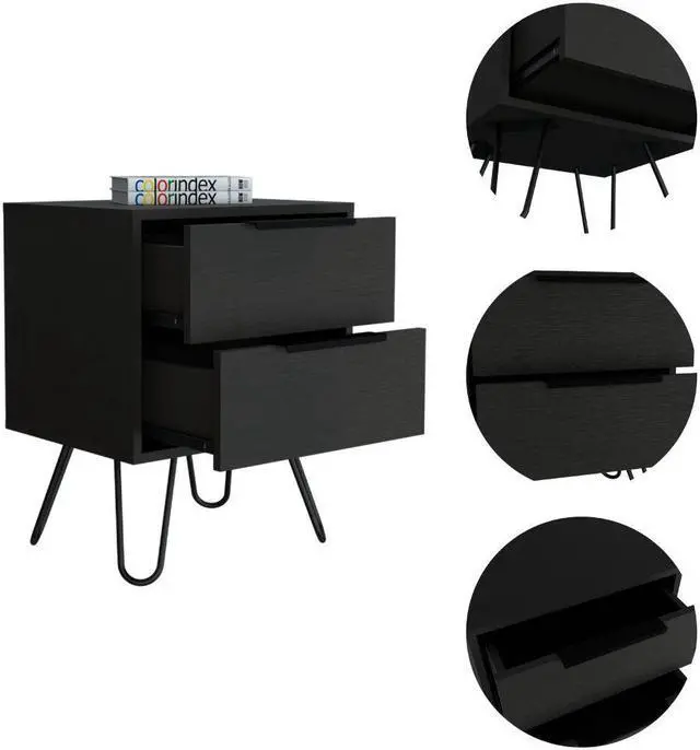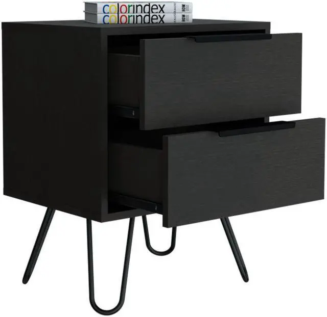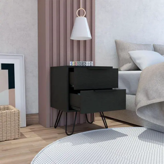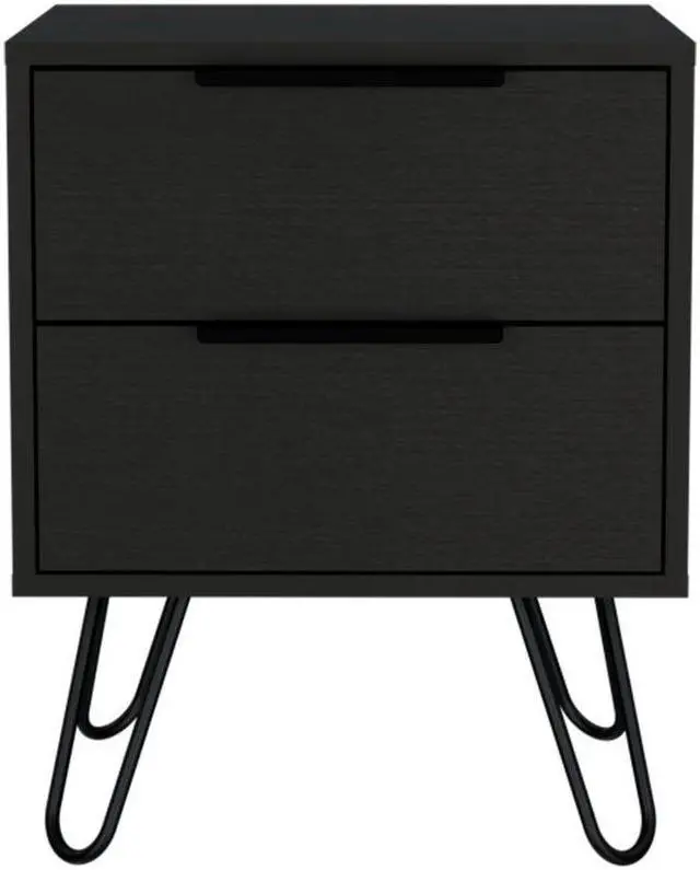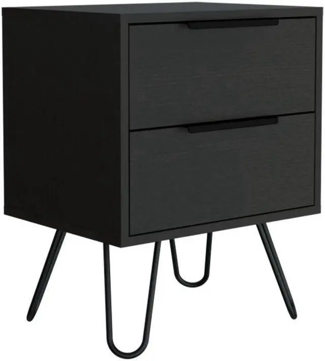 Nuvo Nightstand, Two Drawers, Hairpin Legs