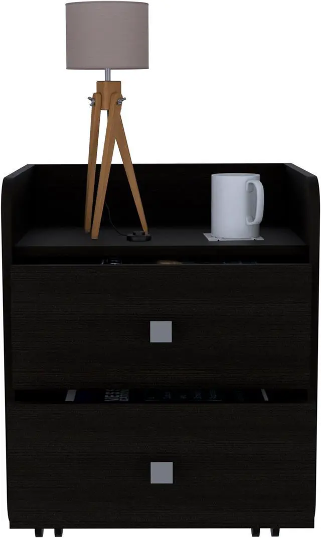 York Nightstand, are you one of those people who can't find a place to put all your stuff and accumulate much clutter all over your room? The York Night Stand is perfect for you. You will be able to see these spaces much more organized. It has two drawers which you can use to store your accessories, the countertop of the nightstand can be used to put your favorite decor. In addition, this nightstand features the best quality of hardware: a drawer slide made of cold-rolled zinc steel and four casters. Designed with elegant black wengue and light gray manufactured wood finish.