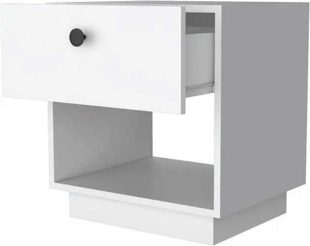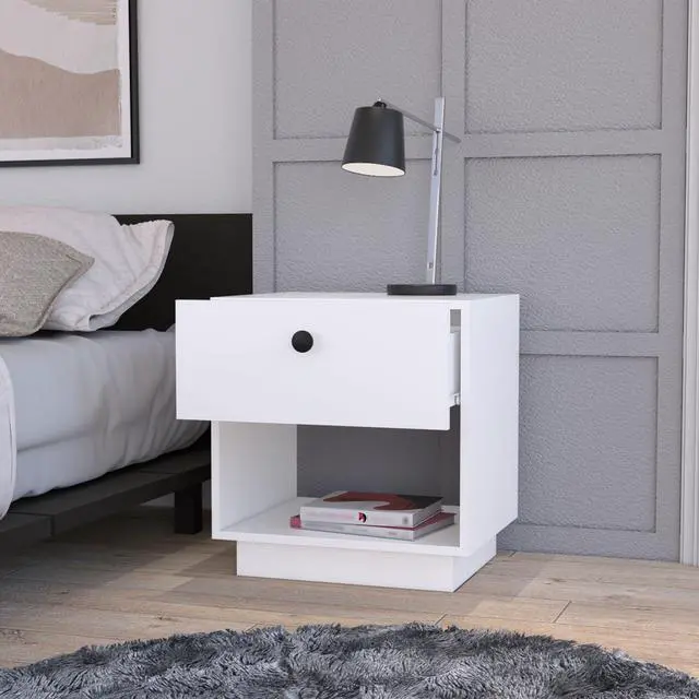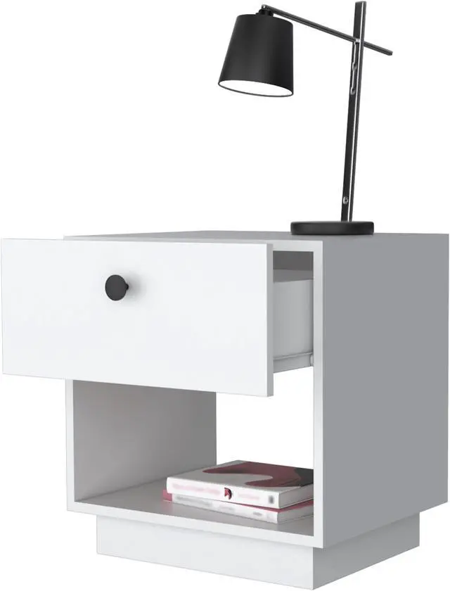 Who wouldn't love their own Sumter 1 Drawer Nightstand? It's an essential piece of furniture for any bedroom! This nightstand features an open storage shelf, perfect for exposing your books, magazines, or favorite decor. Plus, its large drawer is ideal for keeping your belongings safe and handy. The top surface of the nightstand is also a great place to show off your personality and style. Why not add this essential piece of furniture to your bedroom today?