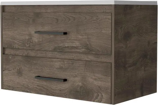 The Maine Bathroom Vanity unit from FM FURNITURE is the epitome of elegance and practicality. Its wall mounted design, double drawer and stunning white and dark brown finish make it the perfect addition to any bathroom looking for a modern update. Measuring 31.7 "W x 18.8 "D x 20.4 "H, this basin provides storage space while saving valuable floor space. Transform your bathroom into a stylish space with the Maine Bathroom Vanity from FM FURNITURE. ***FAUCET NOT INCLUDED***