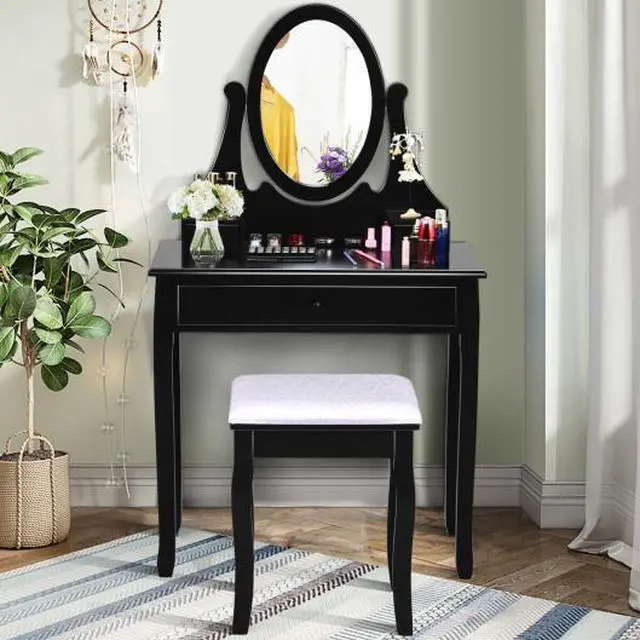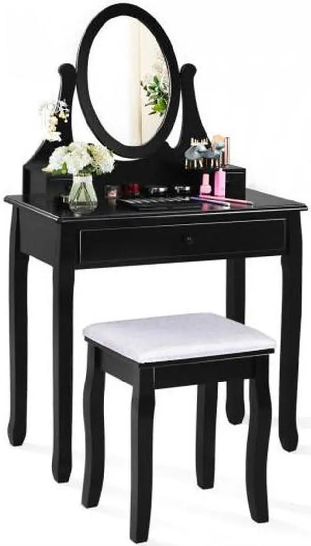 Pretty Dressing Table with 3 Functional Drawers: Have you always wanted to have a beautiful and practical dressing table? Our dressing table is very exquisite, and you will like it very much after receiving it. It comes with 3 removable drawers, 2 on the mirror stand and 1 large drawer in the table. The top is easy to detach and to be a writing desk. You will save trouble of purchasing 2 tables. The non-slip pads of the table and stool legs are to protect the floor from being scratched.