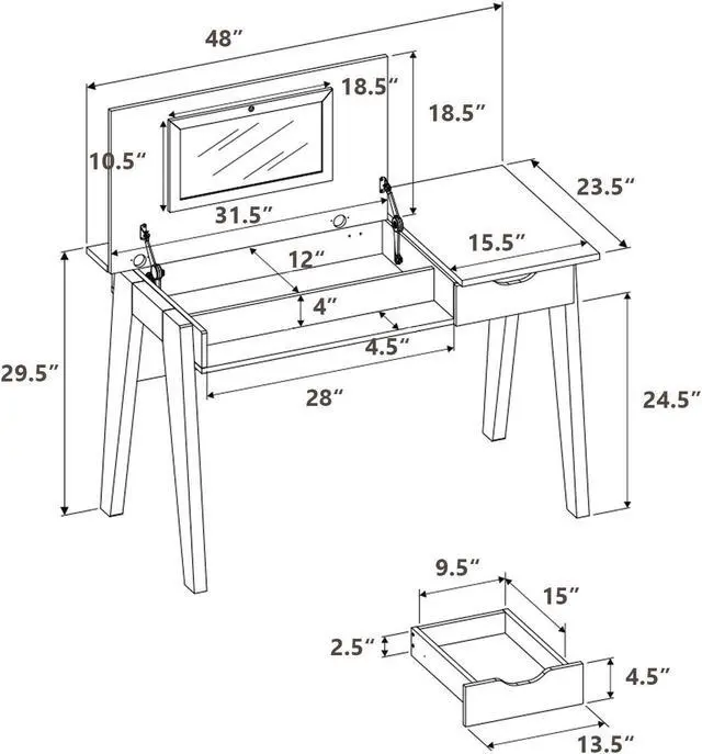 Ample Storage Space: This dressing table includes a wide tabletop, a built-in drawer and two interior compartments, giving you sufficient space for storage. You can classify your supplies according to their sizes and organize them in order by placing them into the proper place.