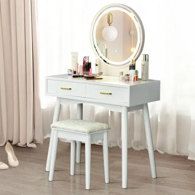 Spacious Storage: Two large drawers with slim golden handles provide organized storage for makeup, nail polish, combs, and more.