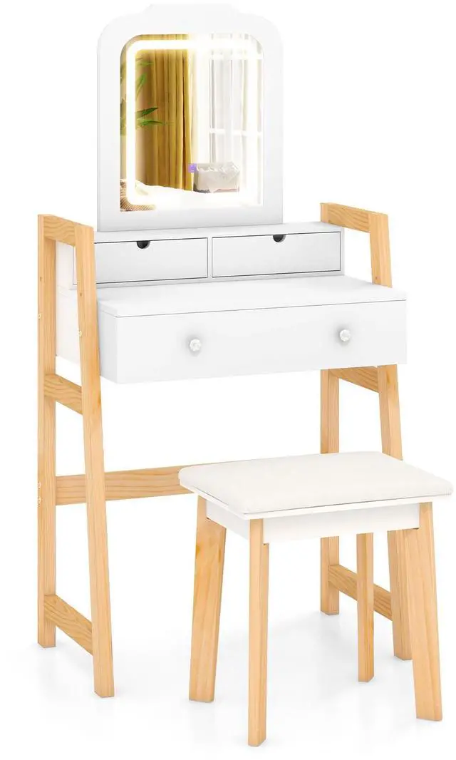 Elegant and Robust Structure: Crafted with solid pine wood legs, this vanity set not only adds a touch of sophistication to your room but also boasts durability for long-lasting use. The protective foot pads can avoid floor damage. Plus, the included anti-toppling device can prevent tip-over accident.