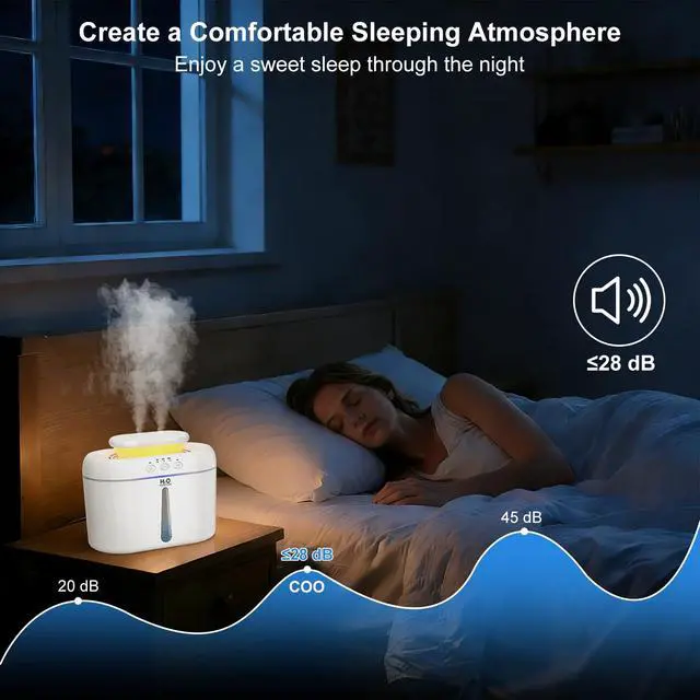 COO Humidifiers for Bedroom, 2L Tank for Large Room, 30 Hour Runtime, 28dB Quiet Cool Mist Humidifier for Home, Baby Nursery, Plants, Indoor, Office, Easy to Fill & Clean,Night Light and Auto Shut-off