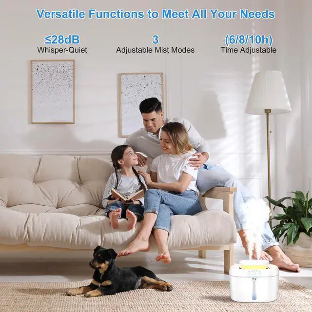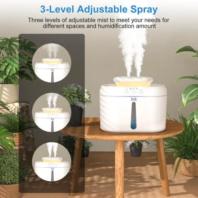 - Automatic power-off function: Built-in water level sensor, when the water level is lower than the safe water level, the power will be automatically cut off. The seal is strong, so there is no need to worry about leakage when liquid is accidentally poured. This large room humidifier comes with 6-hour, 8-hour and 10-hour timer options for energy saving and precise control. If any button is pressed during operation, the timer will reset and start counting from zero