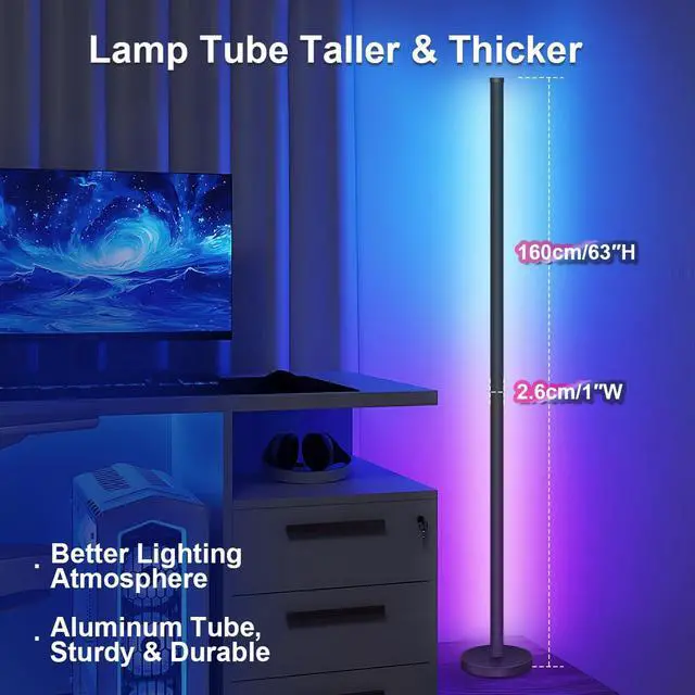 HEIGHT & DESIGN: 63-inch tall corner floor lamp with sleek modern design, perfect for adding ambient lighting to any room corner