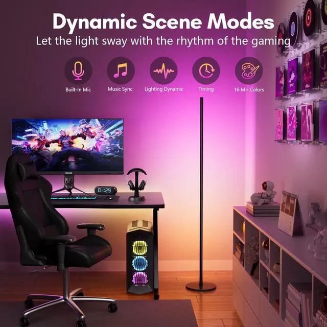 Synchronized with Music: The floor lamps for living room can change color light synchronously with the rhythm of music or the changes of game sound effects. Create various atmospheres and bring you into a new realm of auditory and visual enjoyment.