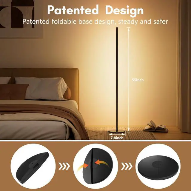 Upgraded Portable Base,Dynamic RGB+IC: our corner lamp has a patented design and invention,no shadow or dark area when it is lit.Built-in high-quality RGB+IC technology,the brightness is increased by 30% compared with traditional lamps beads.Features a portable,foldable base.Let you unleash creativity and create a completely new space.Immerse yourself in a truly fantastic mood lighting color experience.