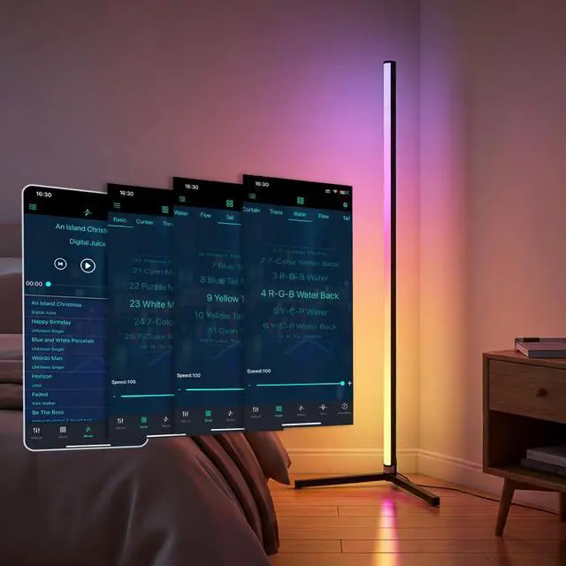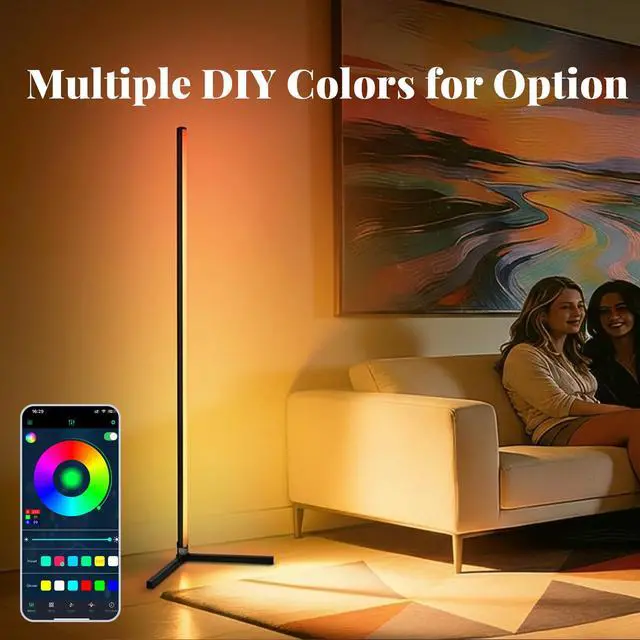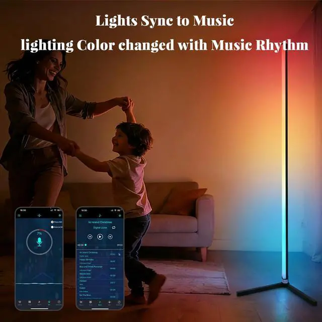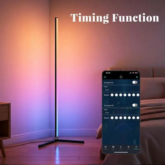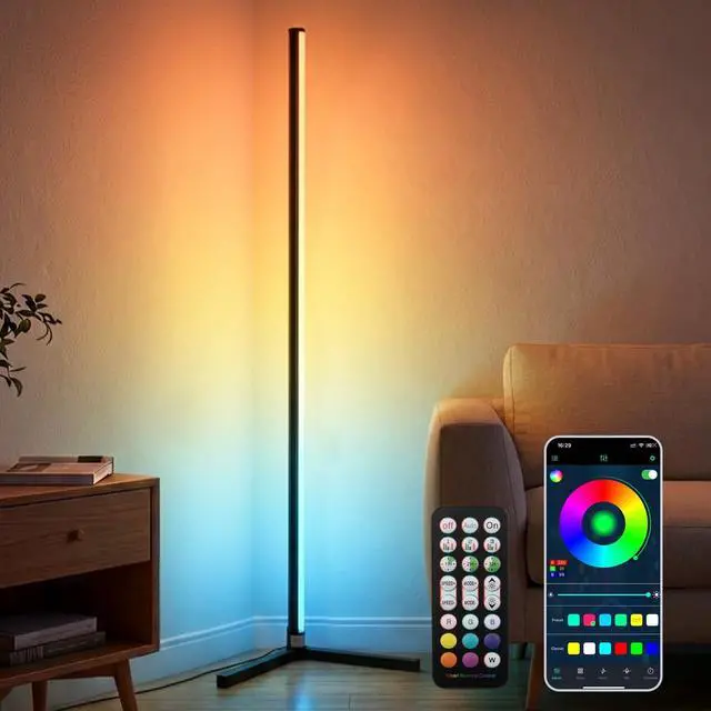 Dual Smart Control The RGB floor lamp adjust colors, brightness, lighting modes and timers via the dedicated mobile app (compatible with iOS & Android) or the included remote control. Control from the couch or even pre-set schedules for wake-up and bedtime.