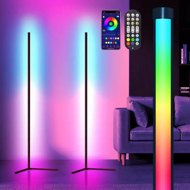 Corner Floor Lamp, 2 Pack LED Corner Lamp with App/Remote/Button Control, Smart RGB Floor Lamp with 16 Million DIY Colors & 68+ Scene, 300+ Scene, Music Sync for Living Room, Bedroom, Gaming Room