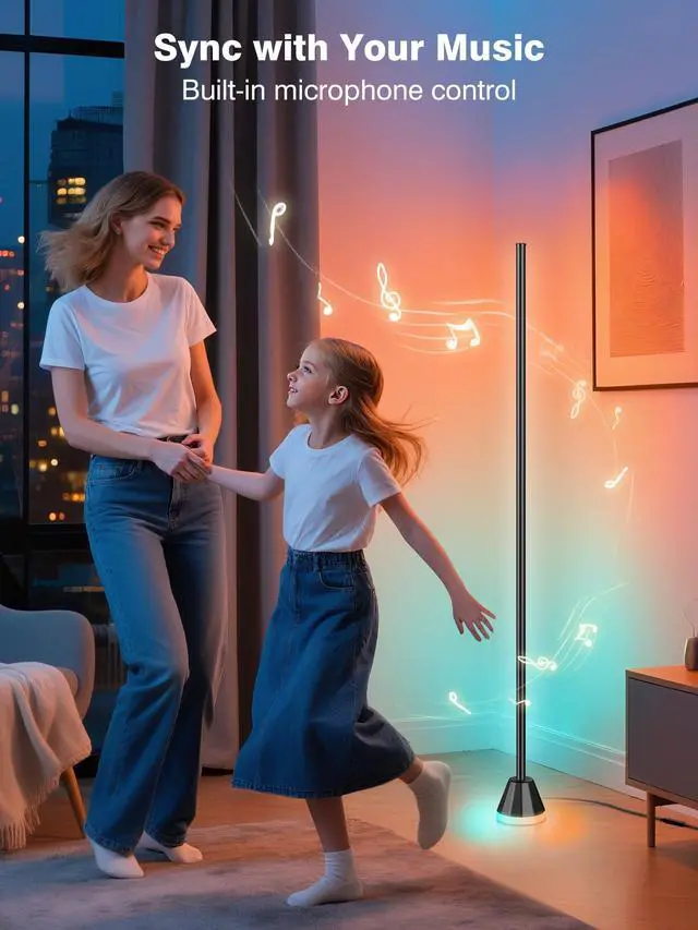 Create the Perfect Ambience: Featuring 16 million+ colors and 68+ dynamic lighting modes, this lamp creates a captivating atmosphere. The music sync feature syncs lights to your favorite tunes, perfect for parties, gaming, or relaxing, transforming your space into an engaging environment.