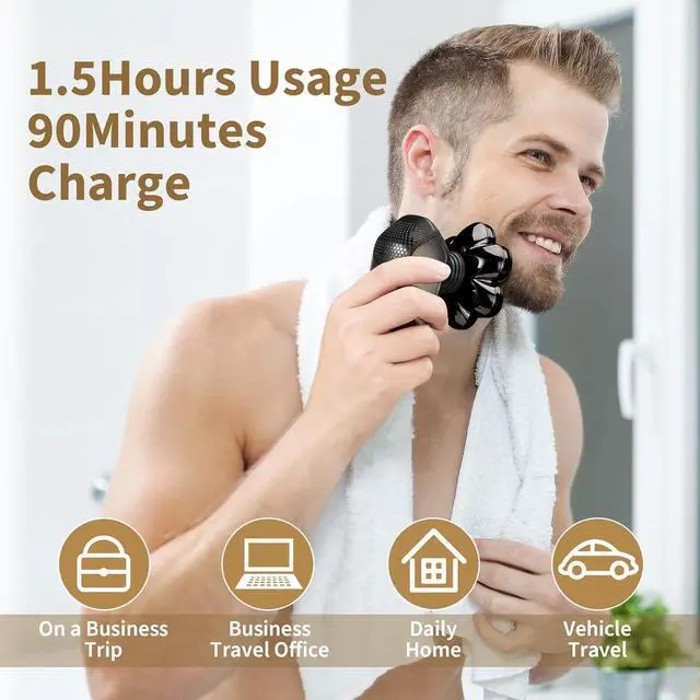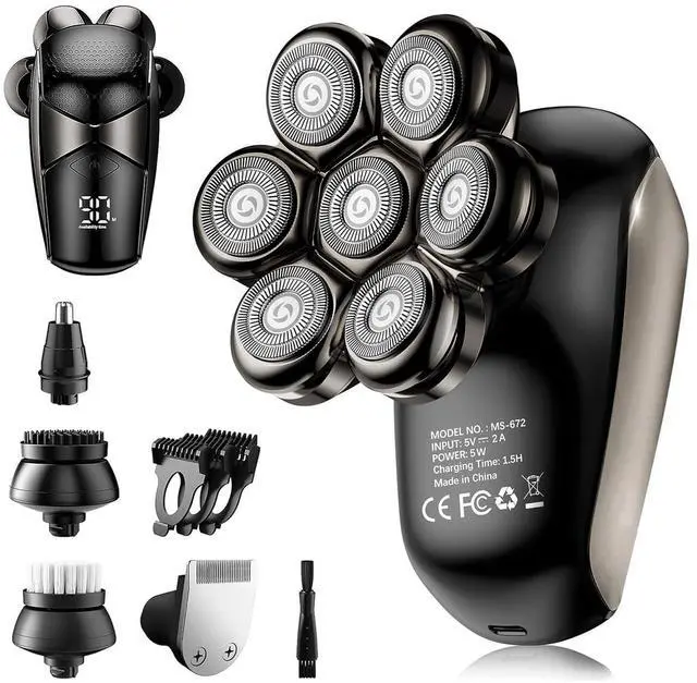 • 5 IN 1 Razor Head SetMultifunctional electric head shaver for men with 5 replacement shaver heads: smooth texture, hair trimmer, nose hair trimmer, massage brush, cleaning brush. We suggest change the replacement head every 3 to 6 months for better daily use. Our head shaver for bald men is so powerful that can meet your daily needs. Exquisite head shave is the best choice for a fast and smooth shave