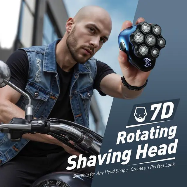 Bald Men: 7D Detachable Electric Razor - IPX6 Waterproof Wet Dry Rotary Shavers - LED Display Rechargeable Head Shaving with Fast Charging