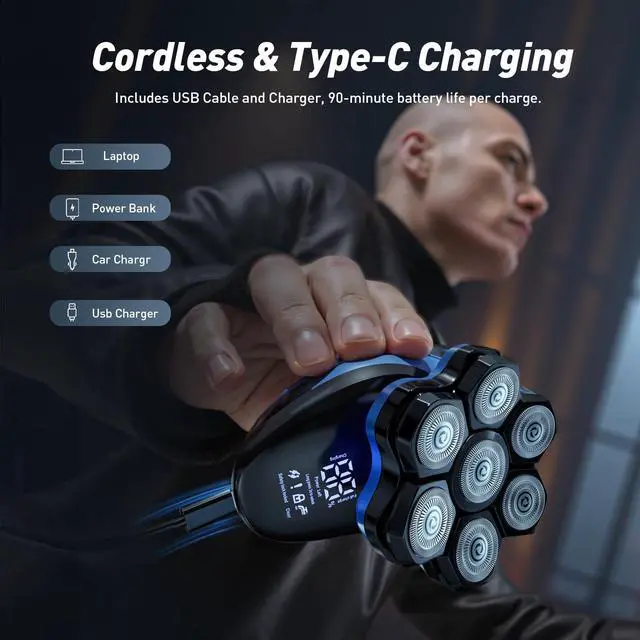 • One-Second Detach, Hassle-Free: Clforczh revolutionary 7D magnetic blade system is easily removable without tools for quick cleaning and maintenance. Simply rinse thoroughly under running water for 3 seconds for a cleaner shave and keep your shaver in top condition. Our bald head shaver is designed for men who love a clean shave but are tired of cleaning blades.