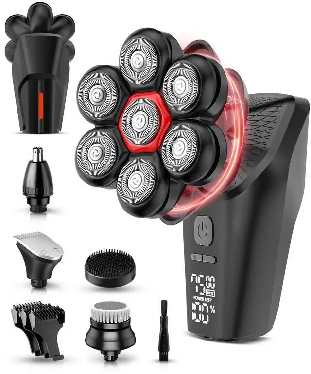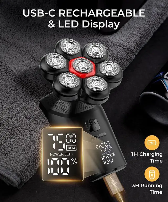 7D Floating Shaving Head: Designed specifically as an efficient head shaver, its 7D rotary blade system expands the shaving area and reduces shaving time. Powered by a high-quality motor, it ensures more hair is removed with each pass, offering a fast and smooth shaveperfect as a shaver for men who value both speed and performance.